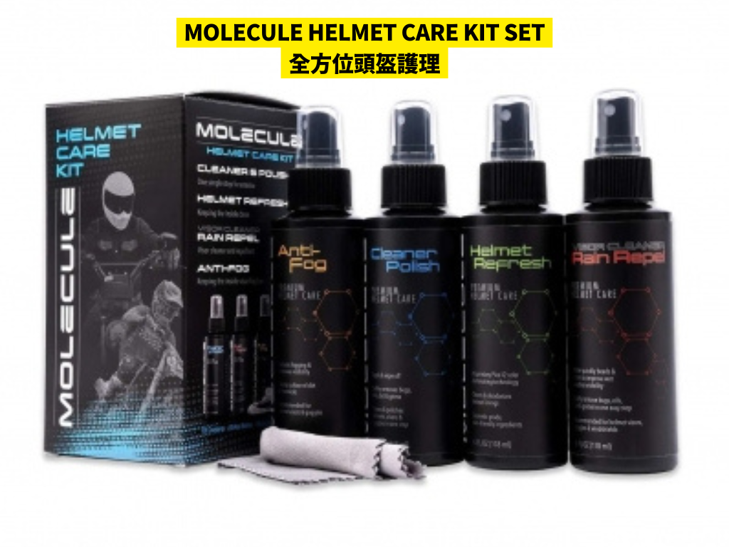 MOLECULE HELMET CARE KIT SET是一套專為頭盔設計的全方位護理組合,內含多種專業護理產品,包括清潔噴霧、拋光噴霧、防霧噴霧、布料除臭劑及專用微纖維毛巾。這套組合的最大優點在於能夠針對頭盔的不同部位進行針對性護理。清潔噴霧能有效去除外殼表面的污漬、油脂及昆蟲殘留,讓頭盔外觀保持光潔如新。拋光噴霧則進一步提升頭盔表面的光澤度,同時形成保護層,減少灰塵附著。防霧噴霧專為面罩設計,能防止因溫差或呼吸而產生的水氣凝結,確保視線清晰安全。布料除臭劑則針對內襯異味及細菌問題,含有抗菌成分,能夠分解異味分子並抑制細菌滋生,使用後內襯散發淡淡清香。專用微纖維毛巾則能溫和不傷表面地完成清潔與拋光工作。這套護理組合讓你無論是日常保養還是深層清潔,都能輕鬆應對,全面提升頭盔的衛生與外觀,延長使用壽命。