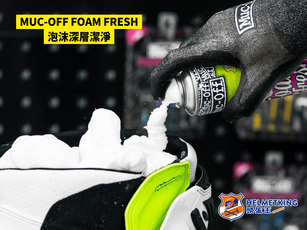 MUC-OFF FOAM FRESH是一款專為頭盔內棉及其他貼身裝備設計的泡沫型清潔劑。它的最大特點在於可產生豐富細緻泡沫,深入頭盔內襯的纖維之間,有效分解並帶走汗水、油脂和污垢。與一般清潔劑不同,使用這款產品時無需拆卸內襯,直接噴灑於表面即可發揮作用,大大地提升日常清潔的便利。清潔過程中,泡沫會迅速包裹污垢,事後簡單擦拭即可令頭盔內部恢復乾淨與柔軟,還會留下淡淡柑橘清香,不僅提升佩戴舒適度,更可延長頭盔內襯的使用壽命,減少細菌滋生的機會。