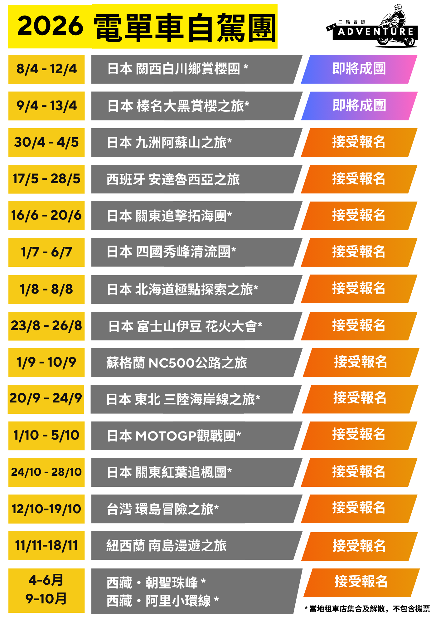 香港人對台灣絕不陌生,但台灣擁有豐富多樣的自然風景的一面,如高山峽谷、海岸線、森林、溪流等,你又有沒有見過?而要真正地體驗這些美景,騎著電單車就是最佳選擇!頭盔王將和台灣最大的電單車租貸聯盟鴻寶,和你一同探索台灣秘境!4天的半環島團會直奔台灣多個出車勝地,讓你感受人以及的台灣真正最美風景!